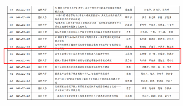 王成湖《以项目驱动引领多层次虚实结合的机器人实践教学研究》、王乃格《机械工程基础课程联动增效与创新竞赛融合教学模式研究》,共2项被立为常规项目。