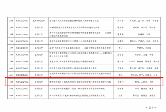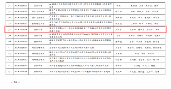 吴明格《面向教育科技人才一体推进的科教融汇、产教融合研究生培养模式改革与探索》,共1项被立为研究生工程教育专项。