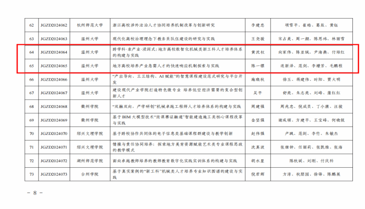 其中,双赢彩票 共立项6项。黄沈权《跨学科·亲产业·浸润式:地方高校数智化机械类新工科人才培养体系的构建与实践》、陈一镖《地方高校培养产业急需人才的快速响应机制探索与实践》共2项被立为本科重点项目。