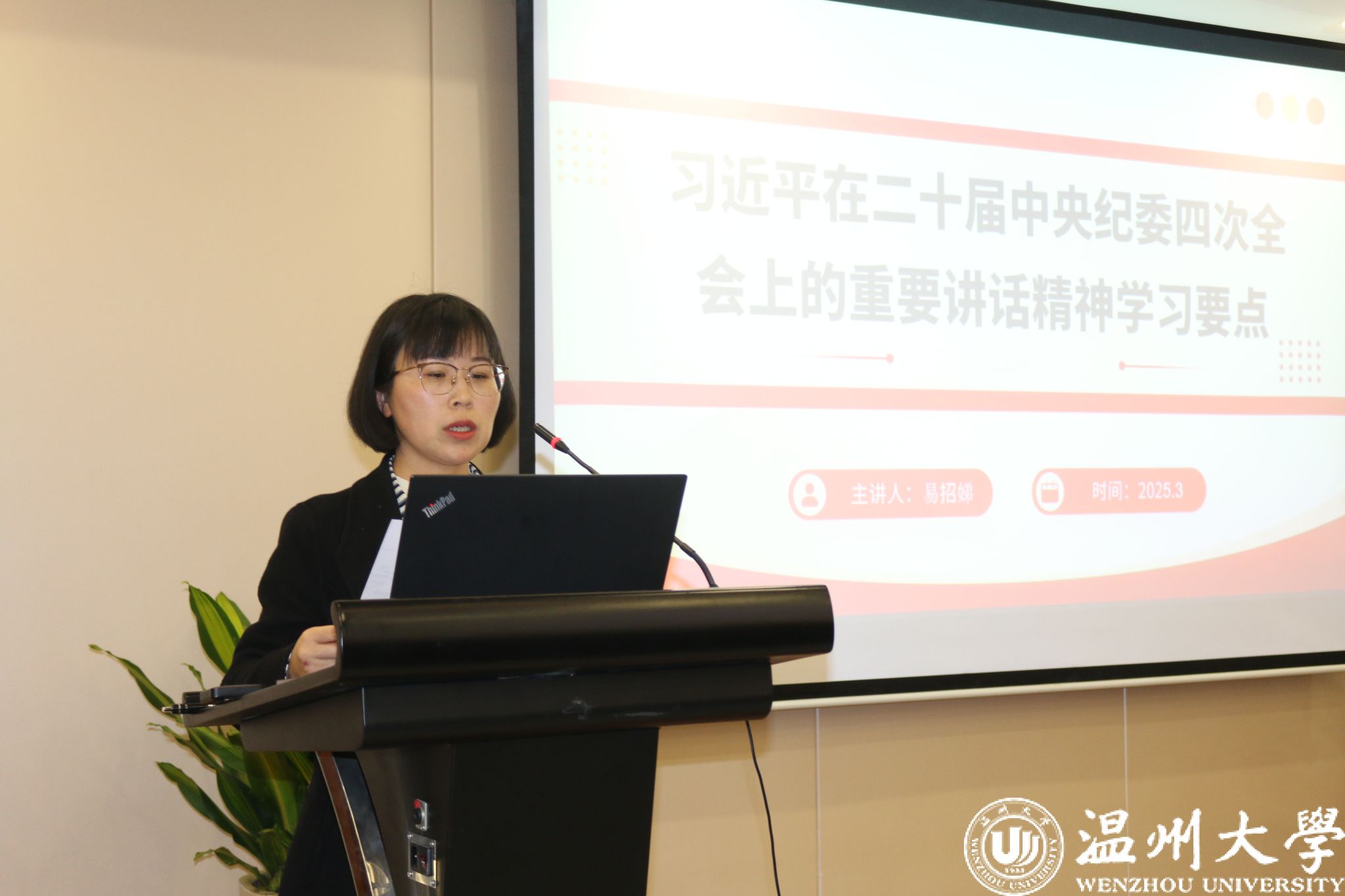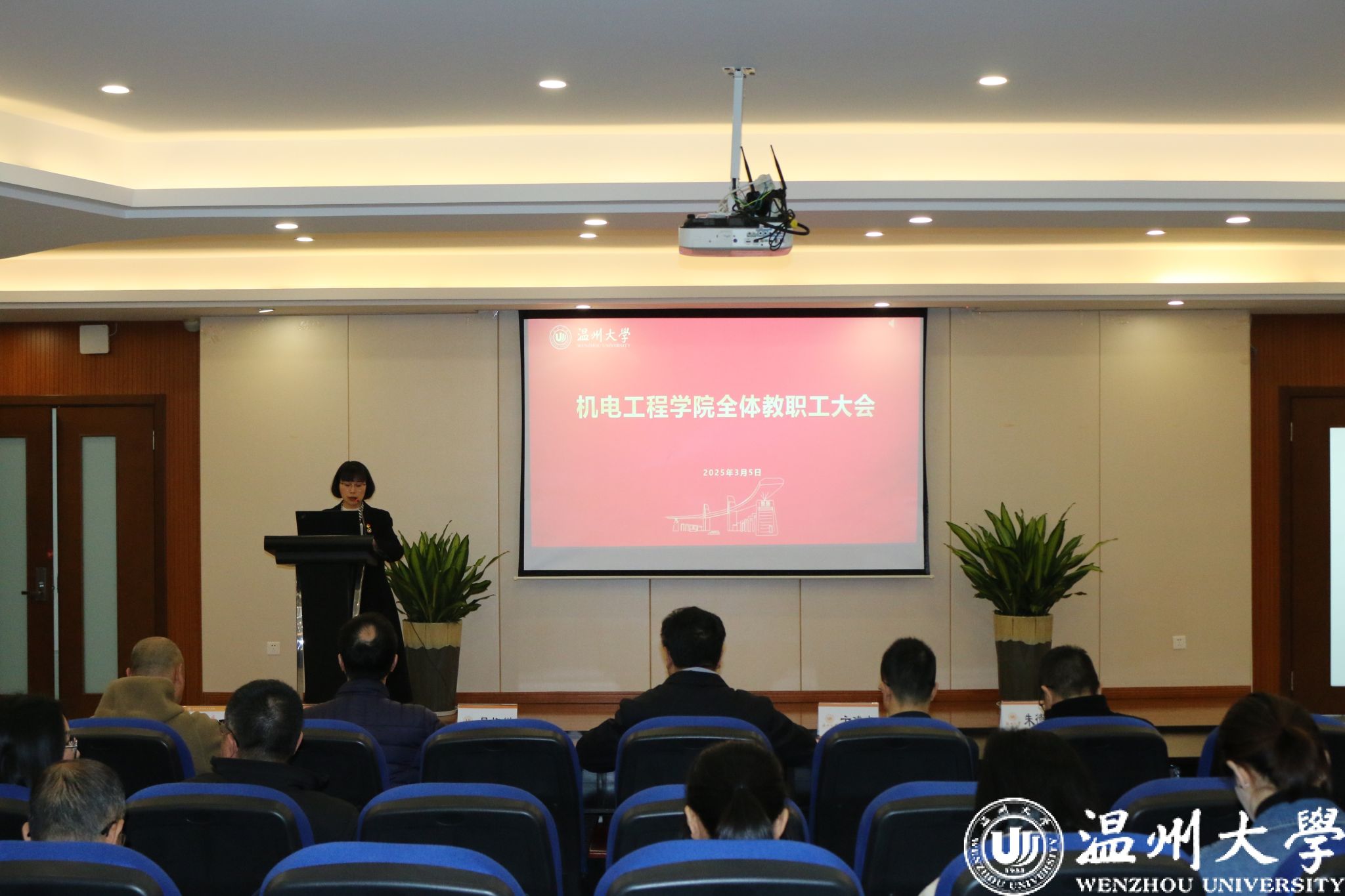 2025 年3月5日下午,双赢彩票 在6B309会议室召开全体教职工大会暨政治理论学习会。双赢彩票 全体教职工以及双赢彩票 激光研究院、平阳研究院、苍南研究院领导班子参会,会议由双赢彩票 党委书记易招娣主持。
