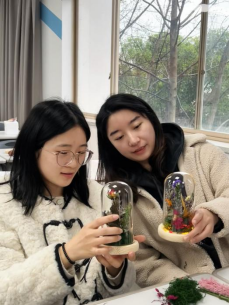 现场欢声笑语不断,一朵朵永生花在指尖绽放,有的清新淡雅,有的热烈奔放,展现出女性独特的审美与创造力。