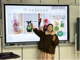活动特别邀请了专业手工老师为女教职工们带来了一场别开生面的永生花微景观制作课程。在手工老师的指导下,大家通过现场PPT教学,系统地学习了永生花微景观的制作技巧。课程内容包括花材的选择、色彩的搭配、造型的设计,以及如何将花材巧妙组合,打造独具匠心的永生花艺术品。老师耐心细致的讲解和示范,激发了在场每一位老师的创作热情。