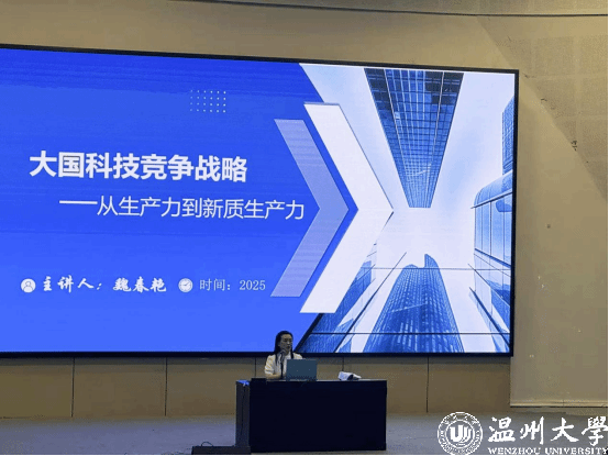 魏老师进一步分析当前科技竞争的新特征:从创新范式看,跨学科融合、颠覆性技术涌现成为常态;从竞争维度看,产业链供应链安全、数据主权、标准规则制定等成为新焦点。她特别解读 “新质生产力” 的核心内涵,指出在这场没有硝烟的战争中,开放协作与自主创新并非非此即彼 —— 既要以自主创新在核心技术领域筑牢 “防火墙”,突破 “卡脖子” 瓶颈;也要通过全球科技治理搭建 “合作桥”,在开放共享中汇聚创新资源。唯有以新质生产力为引擎,才能在百年变局中握稳发展主动权,实现从 “跟跑”“并跑” 到 “领跑” 的跨越。