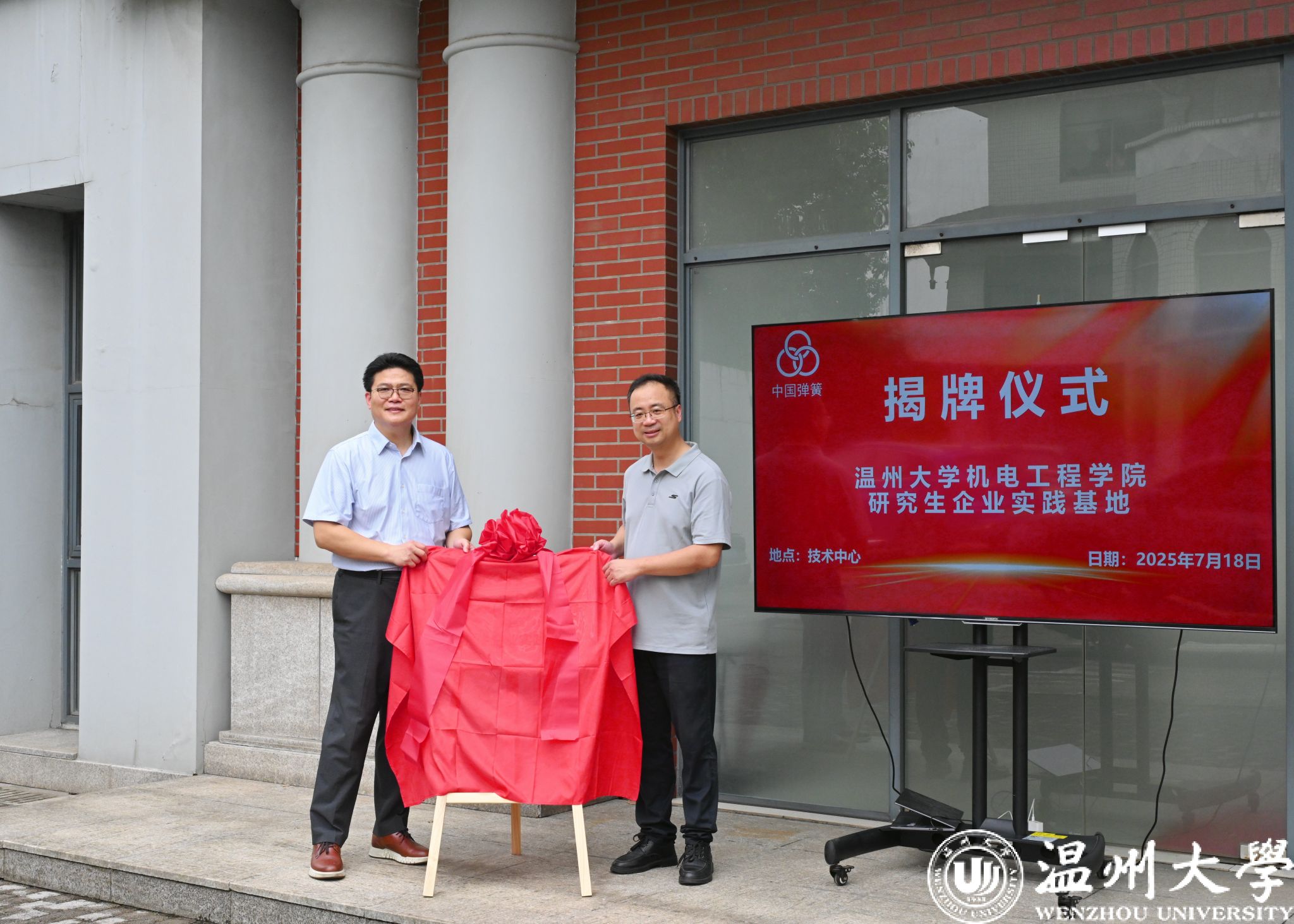 7月18日,双赢彩票 与上海中国弹簧制造有限公司共建研究生企业实践基地揭牌仪式在上海隆重举行。双赢彩票 代表、基地负责人周晨副教授,上簧厂总经理张镓博士、研发中心技术总监王怀庆、制造部业务总监杨利军等企业方代表,首批入驻基地实践的研究生,共同参加了揭牌仪式。
