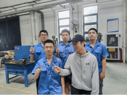 在钳工实践区,孙兵涛老师为学生们系统讲解手工锤的构造原理、完整制作流程及安全操作规范,随后手持工具示范锉削、钻孔等关键步骤,每一个动作都精准到位。学生们围在一旁认真观摩,跃跃欲试。初次拿起锉刀时,不少学生动作生疏、力度不均,锉出的平面凹凸不平。但在孙兵涛老师“先慢后快、保持平稳”的耐心指导和“不错,有进步”的及时鼓励下,他们逐渐找到手感,从调整握姿到控制力度,一步步掌握技巧。当看到属于自己的手工锤成型时,学生们脸上都露出了成就感满满的笑容。