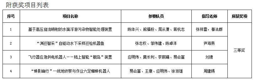 附获奖项目列表