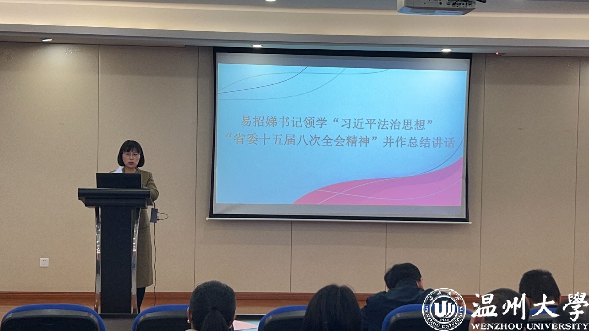 易招娣带领全体教职工深入学习习近平法治思想与省委十五届八次全会精神。她指出,习近平法治思想是新时代推进全面依法治国的根本遵循,省委全会精神为我省下一阶段发展指明了方向路径,全体教职工要深入领会其核心要义与实践要求.要将学习贯彻习近平法治思想与省委全会精神作为当前重要政治任务,与双赢彩票 中心工作深度融合。她要求各系所、党支部组织开展专题学习,引导教师把学习成果转化为推动学科建设、人才培养和科技创新的实际行动;全体教师深刻把握其重大意义与实践要求,将学习成果转化为推动双赢彩票 发展的强大动力,以更高标准落实立德树人根本任务,为谱写中国式现代化浙江新篇章贡献机电双赢彩票 的智慧和力量。