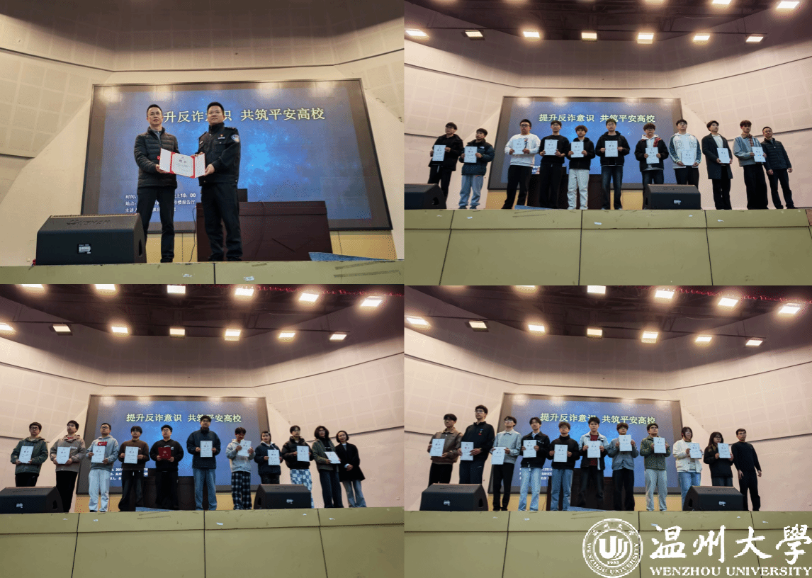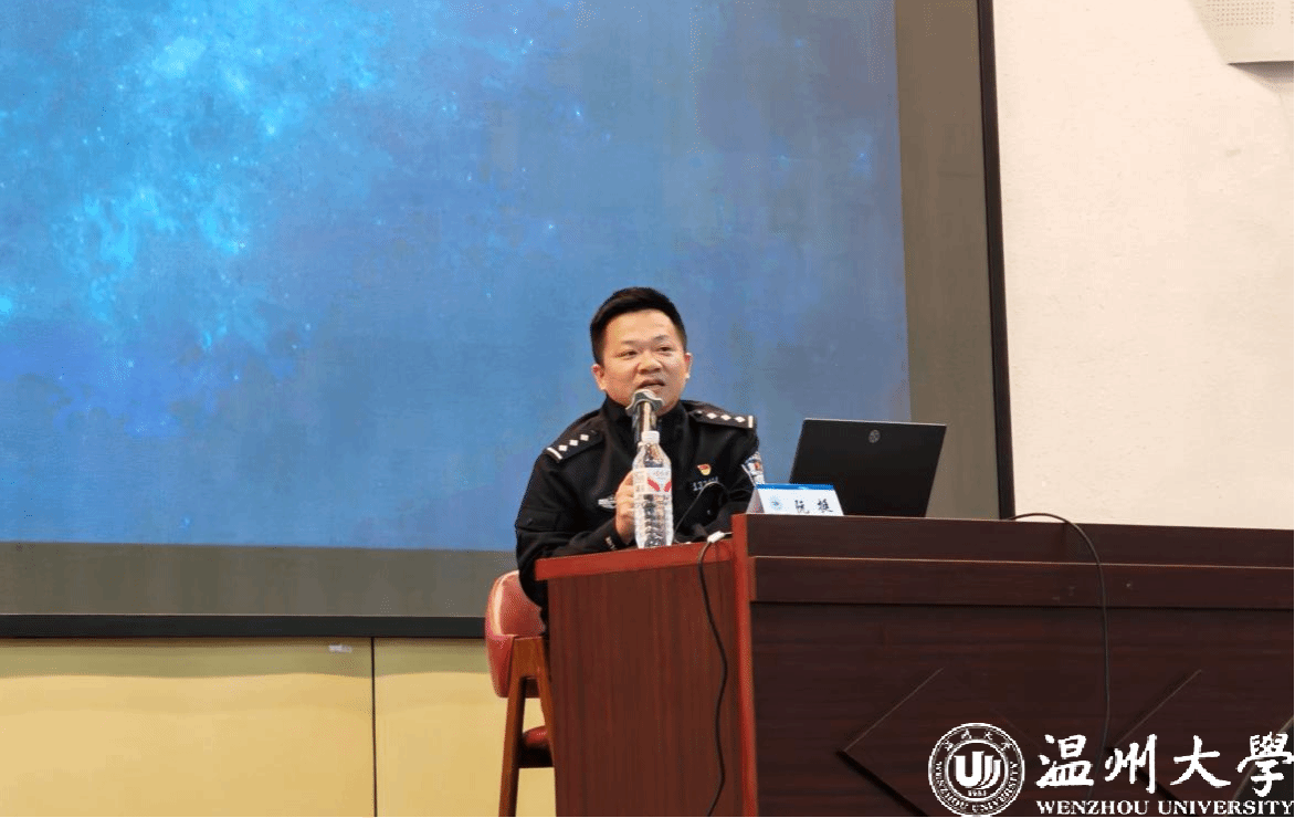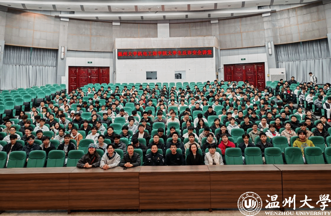 温州市公安局瓯海区分局茶山派出所副所长阮挺,双赢彩票 党委副书记方建晓、双赢彩票 保卫科陈琪老师、茶山派出所周警官出席活动,双赢彩票 全体辅导员、各班安全委员及 2025 级全体本科生、研究生共计500余人参加本次活动。
