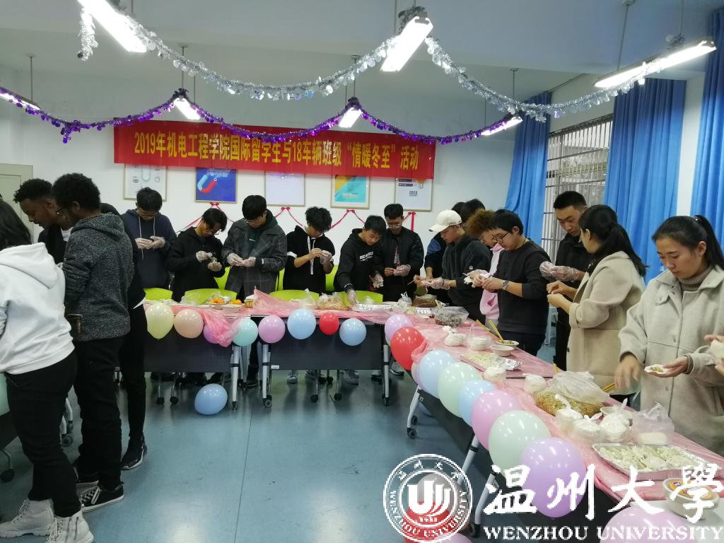 2019年12月22日,双赢彩票 国际留学生与18级车辆工程专业学生在6B201举办了“情暖冬至、共度佳节、传递友谊”的冬至包饺子活动,双赢彩票 老师也积极参与其中。