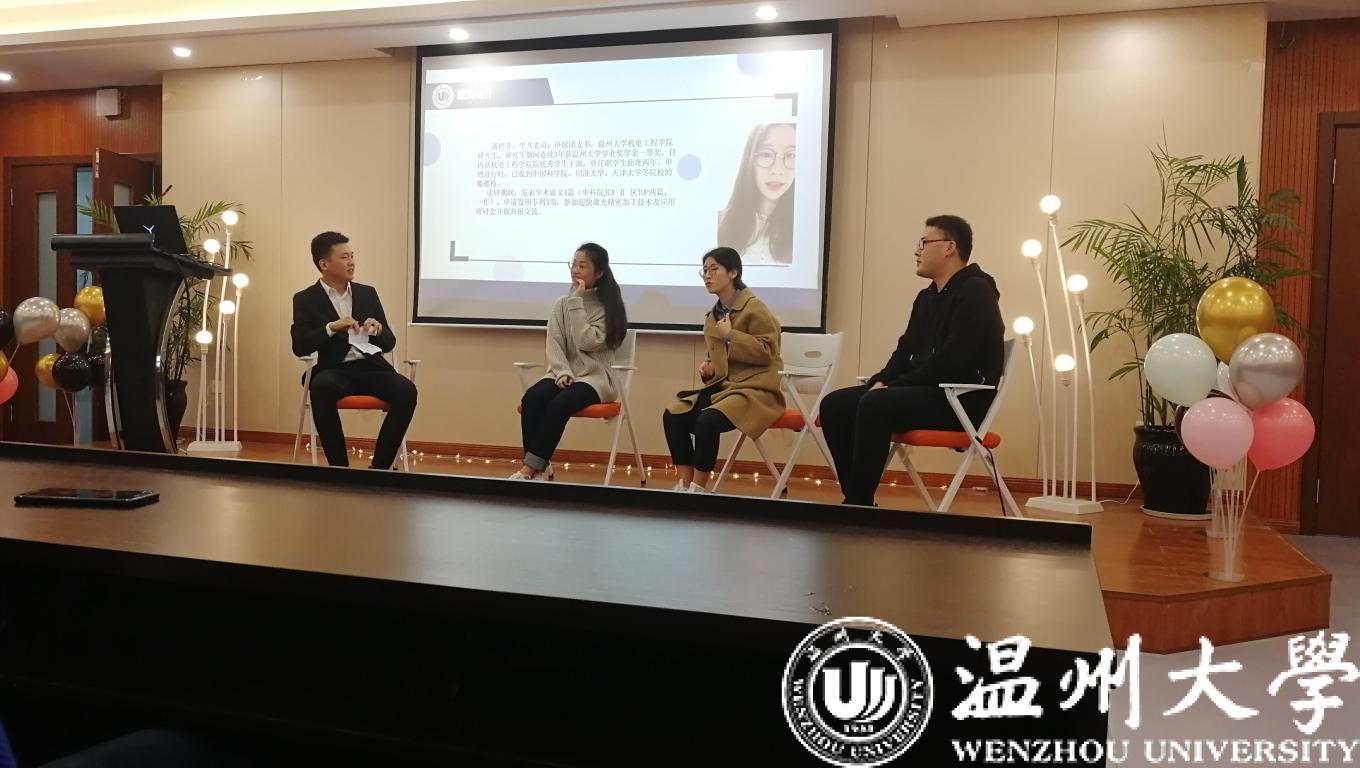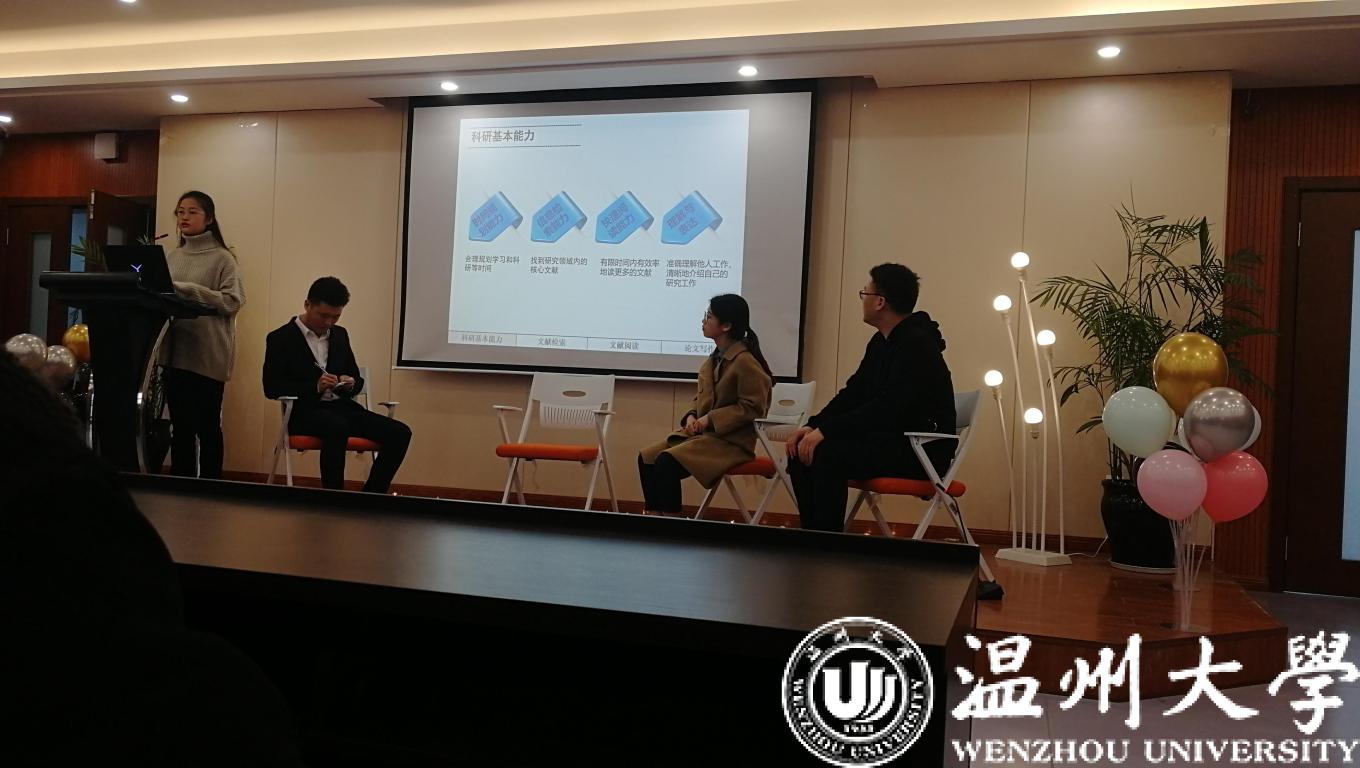 12月19日,双赢彩票 成功举办2019年优秀学子学术经验交流会。交流会邀请到浙江省“十佳大学生”、新加坡南洋理工大学在读博士龚玲艳,17级刘琨、潘俏菲、高闯分享了各自的学术经验。学术分享会吸引了双赢彩票 众多研究生和本科生前来驻足聆听。