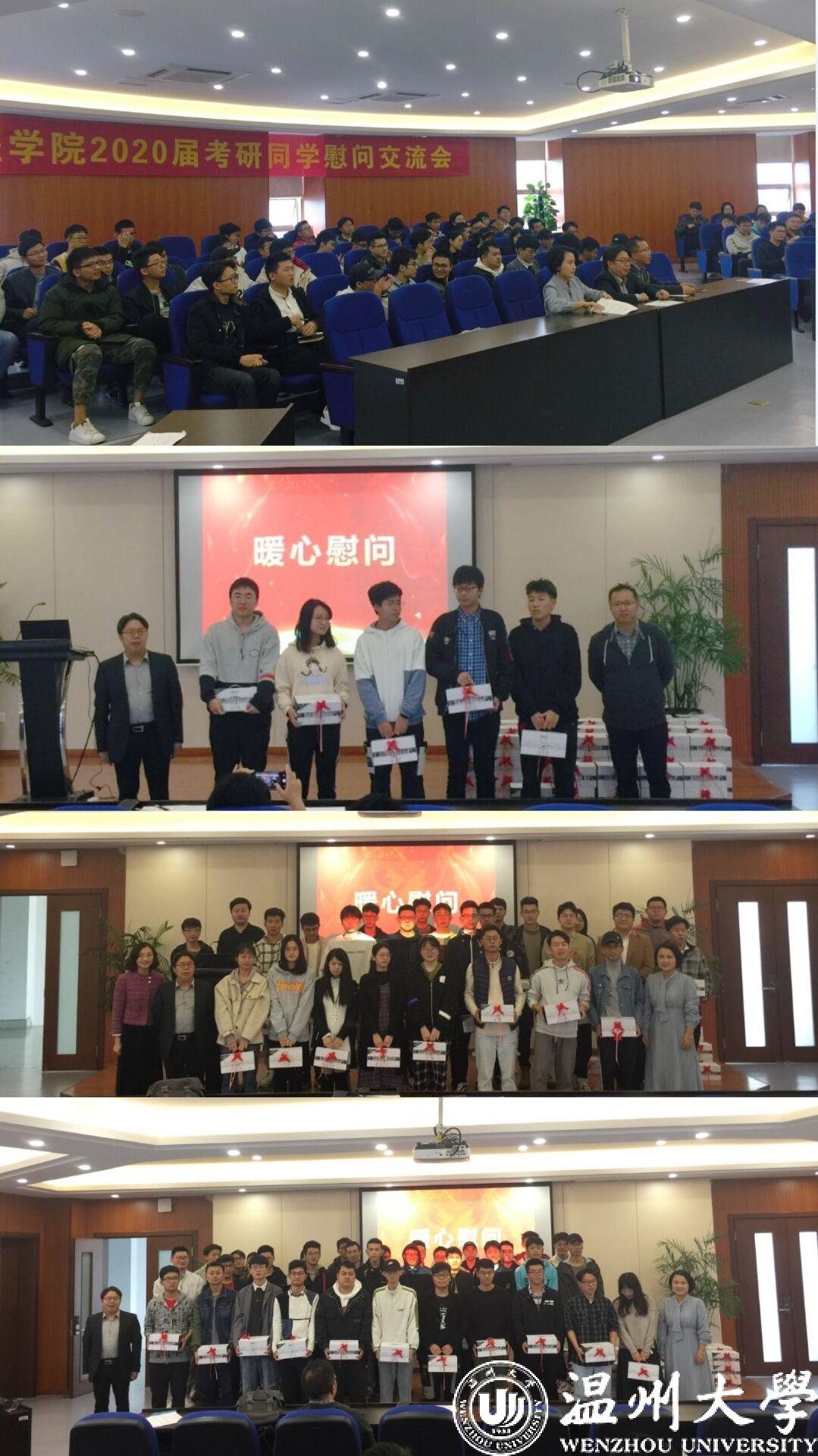 为了鼓励考研同学积极迎考,增强考研信心,舒缓备考压力。双赢彩票 在2019年11月22日下午14点在双赢彩票 6B309报告厅举行2020届考研学生慰问交流会。双赢彩票 院长周宏明老师,机电工程党委副书记黄玮老师、16级班主任代表陈贤老师、学生科辅导员郑妤老师、胡施施老师以及全体考研同学参加此次活动。