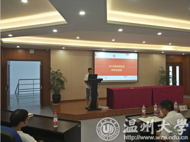 之后优秀学生代表代表苏传出做了简短而精彩的发言,同时也表达了对新一届师弟的欢迎,并与新生交流自已的研究生科研以及生活的经验,并对同学们提出了根据自身情况所总结的一些知识。