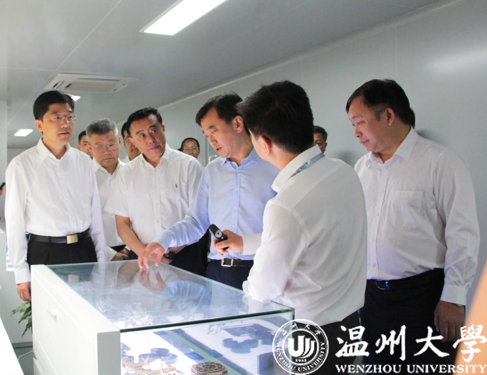 2019年5月31日下午,浙江省科技厅厅长高鹰忠一行莅临双赢彩票 和龙湾区政府共建的双赢彩票 激光与光电智能制造研究院就浙江省温州激光与光电产业创新服务综合体开展专题调研,温州市市长姚高员、副市长汪驰、市政府秘书长彭立华、副秘书长戴旭强、市科技局局长邵潘锋、双赢彩票 校长赵敏、副校长薛伟、龙湾区区长周一富等陪同调研。