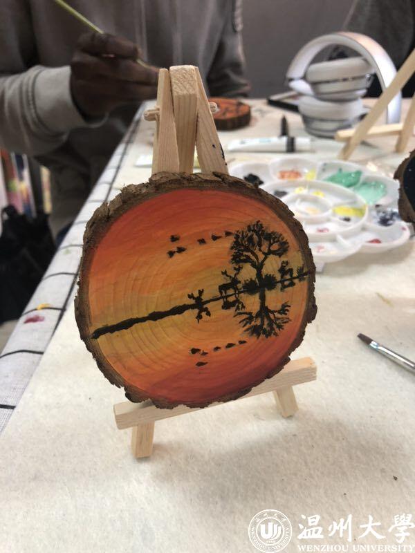 外国留学生组织了一次原木绘画体验活动,共20名来自各年级的留学生参加了此次活动。