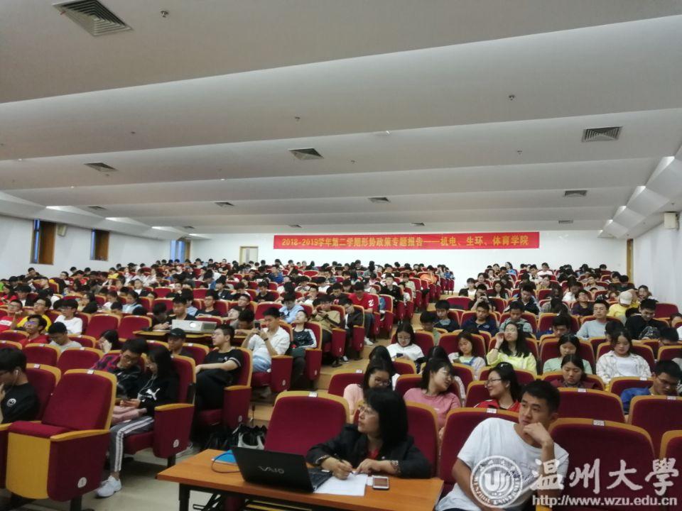 2019年5月28日18:30,双赢彩票 、生命与环境科学双赢彩票 、体育双赢彩票 在双赢彩票 步青厅共同开展了2018-2019学年第二学期形势政策课。本次特别邀请了马克思主义双赢彩票 张小燕教授为三个双赢彩票 的同学开展《红色文明在瓯越》主题的形势政策报告讲座。