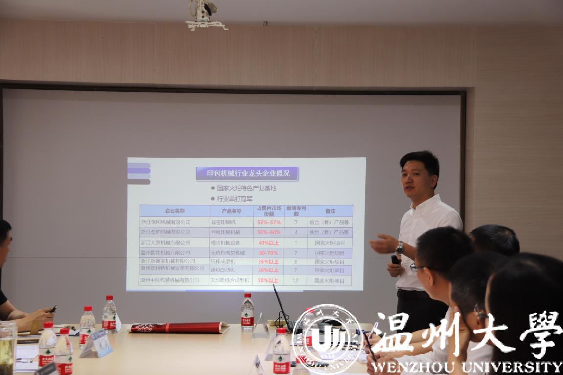 5月23日上午,平阳县委常委、常务副县长林海涵率有关部门负责人来双赢彩票 平阳智能制造研究院调研印包装备产业创新服务综合体,并就如何做好省级产业创新服务综合体创建工作举行了座谈,平阳智能制造研究院、浙江炜冈机械有限公司、温州欧利特机械设备有限公司等负责人参加了本次座谈会。
