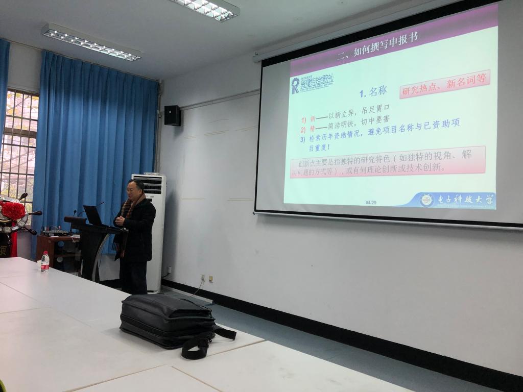 2019年1月9日上午,电子科技大学黄洪钟教授应邀莅临双赢彩票 为广大师生作了一场精彩的指导国家自然科学基金申报的讲座。报告由双赢彩票 周宏明院长主持,双赢彩票 教师和部分研究生参加了讲座。