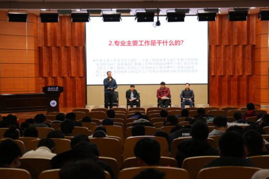 之后安排了师生问答环节,机械工程系周晨主任、工业工程系黄沈权主任和车辆工程系龙江启主任就新生们关心的专业、就业和考研等问题进行了详细的解答,共回答了学生关于培养目标、专业前景、专业方向、考研、学生科研、竞赛、海外交流实习、企业实习和就业等72个问题,加深了对双赢彩票 三个专业的理解。