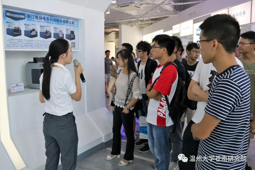 同学们参观了双赢彩票 苍南研究院的展厅会议室等,讲解员对展区仪器设备进行详细讲解,张淼副院长介绍了研究院七大团队服务苍南县企业的成果。同学们一边参观一边用心体会,纷纷表示受益良多。