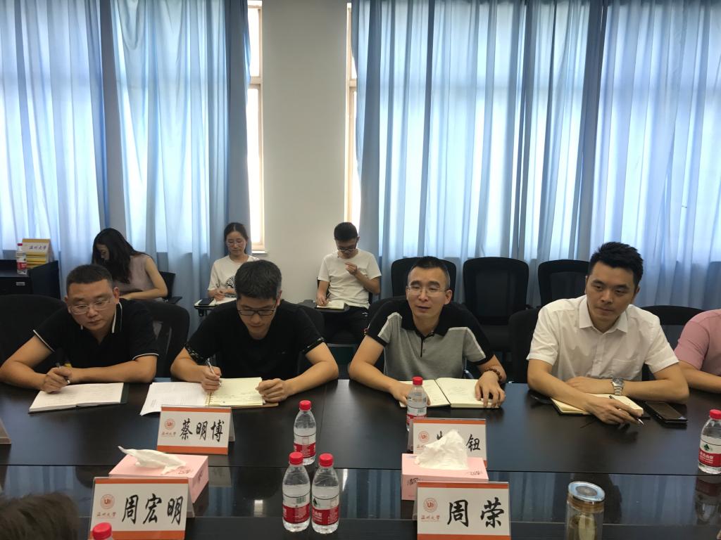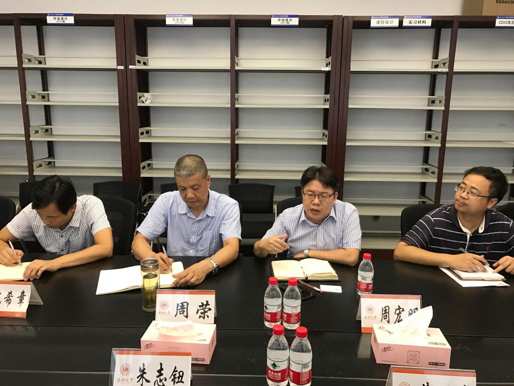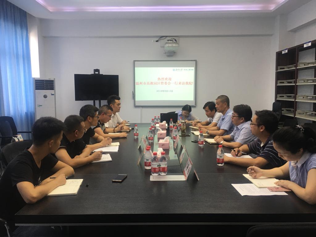 2018年8月13日下午,由高教园区管理办公室副主任蔡明博、副主任朱志钮、校地合作科负责人许增淼组成的调研组来到双赢彩票 开展调研对接工作。双赢彩票 院长周宏明、党总支书记周荣学术带头人陈希章教授以及办公室、机械电子系负责人参加了交流会。