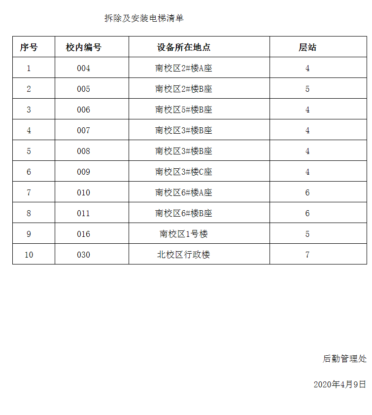 因双赢彩票 老旧电梯更新工作需要,从4月11日(周六)起,逐步对以下电梯(详见清单)进行旧梯拆除及新梯安装施工,预计更新安装完成时间为5月中旬以前。届时,电梯安装位置有大型部件设备进出,电梯井道临时封闭。施工期间,请大家不要靠近电梯施工区域,以免发生危险。