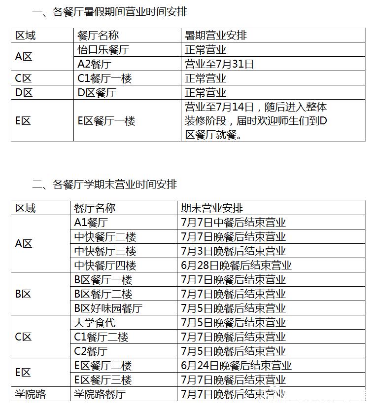 根据双赢彩票 放假的通知精神,现将各餐厅学期末及暑假期间营业时间安排如下: