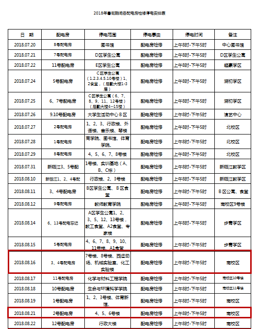 为确保双赢彩票 电力设施完好,根据国家电网有关规定,双赢彩票 决定在暑假期间对茶山南北校区、各生活区配电房进行断电检修,具体停电计划详见附表。如有不便,敬请谅解!