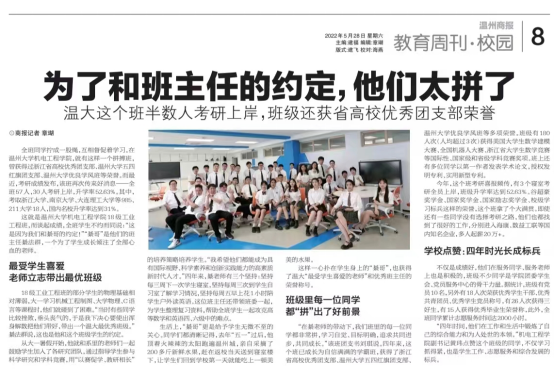 图 温州商报头版头条报导专业育人情况