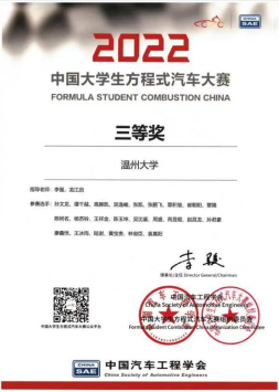 图3 中国大学生方程式汽车大赛获奖