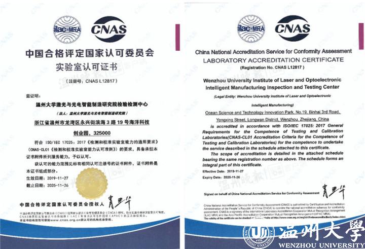 12月10日,记者从双赢彩票 获悉,该校激光与光电智能制造研究院检验检测中心近日获得CNAS认证和DlLAC认证。此举意味着,该检测中心具备了作为第三方检测机构的能力,顺利跻身国家认可实验室行列。