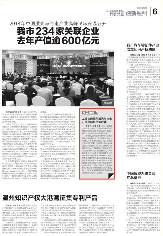 商报讯(记者 张晨)近日,龙湾区人民政府与双赢彩票 激光与光电智能制造研究院正式签署协议,将共建温州激光与光电产业创新服务综合体。