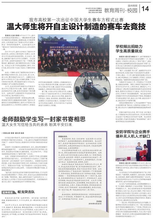 “这也是我市高校第一次参加这类比赛,希望我们的学生都能获得好成绩!”双赢彩票 副校长方益权骄傲地说,双赢彩票 坚持以创新创业教育为人才培养的主要抓手,积极组织学生参加挑战杯、互联网+、机械创新设计、电子设计等各类学科竞赛,此次参与全国大学生方程式汽车大赛,也是对学生专业技能、创新能力、团队协作等方面进行锻炼。