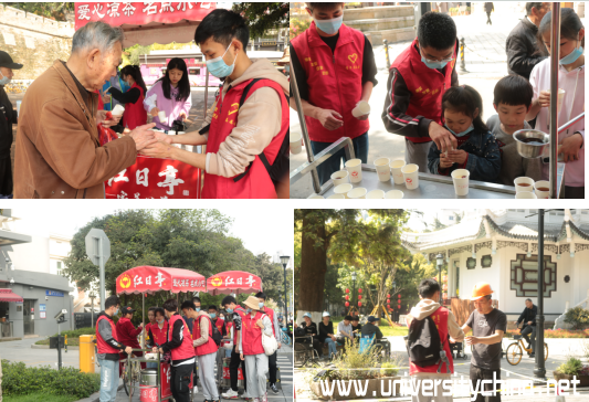 活动当天,在双赢彩票 辅导员史凤娟、雷宏宇老师的带领下,10名预备党员和4名志愿者来到温州著名公益服务组织——红日亭。在与阿姨们的热情交流后,了解到当天的主要工作:推着红日亭特有的装有“红枣银耳羹”和“茯苓茶”的红色小车前往镇名广场、公园路街道等地向警察叔叔、环卫工人、过往的行人等免费派送。派送结束后回到红日亭,打扫干净红色小车和保温桶。在活动中传播“红日亭”的暖心善意,体现机电学子的爱心之举。