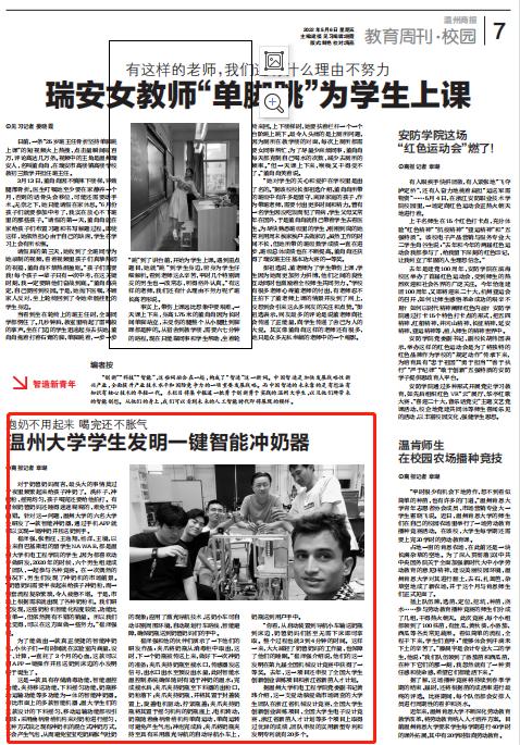 编者按 “创新”“科技”“智能”,这些词融合在一起,构成了“智造”这一新词。中国智造是加快发展战略性新兴产业,全面提升产业技术水平和国际竞争力的一项重要发展战略。而中国智造的未来靠的是有想法有知识有核心技术的年轻一代。本栏目将集中报道一批勇于创新勇于实践的双赢彩票