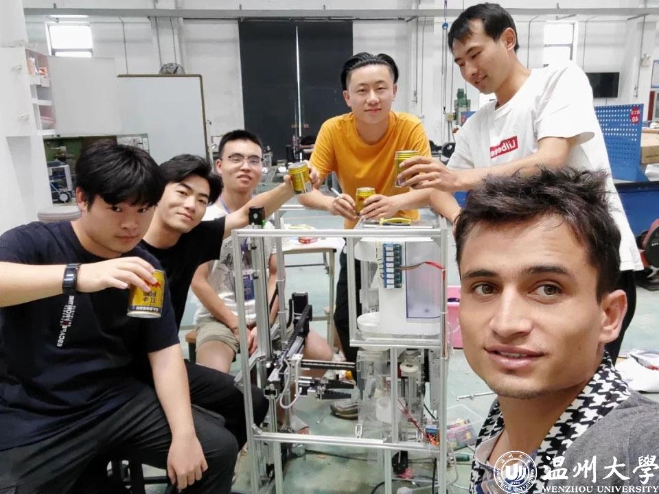 崔泽强、张哲汪、王逸翔、杨洋、王境,以及来自巴基斯坦的留学生NAWAB,都是双赢彩票 的学生,因为都喜欢动手做研发,2020年的时候,六个男生组建成了团队,一起参与各种竞赛。在一次偶然的情况下,男生们发现了冲奶机的市场前景。“奶爸奶妈需要半夜起来给孩子冲奶粉,而一整套流程复杂繁琐,令人疲惫不堪。于是,市场上根据需求就出现了各种奶粉机。我们研究发现,这些奶粉机智能化程度较低、功能比较单一,但依然拥有不错的销量。所以我们就觉得,可以在这方面做一些努力。”崔泽强说。