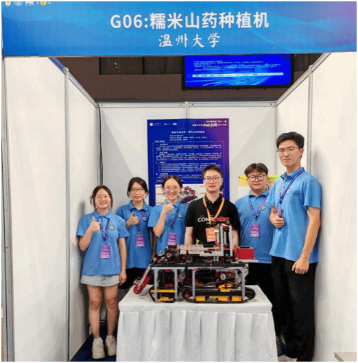 温大自去年7月启动该大赛选拔赛以来,经过校赛、省赛等层层选拔,最终《糯米山药种植机》和《绿叶蔬菜智能株间除草机器人》2项作品进入国赛。经过激烈的竞争角逐,作品《糯米山药种植机》获全国一等奖(慧鱼组)。该作品是一款专为温州文成县糯米山药种植设计的全自动一体化种植机,主要由行进、松土、起垄、覆膜、挖洞、移苗、种苗、覆土灰等八个部分组成,实现了糯米山药从备土到种植的全过程自动化,可以大大减少人工成本,提高种植效率,推动农业现代化,带动产业发展。