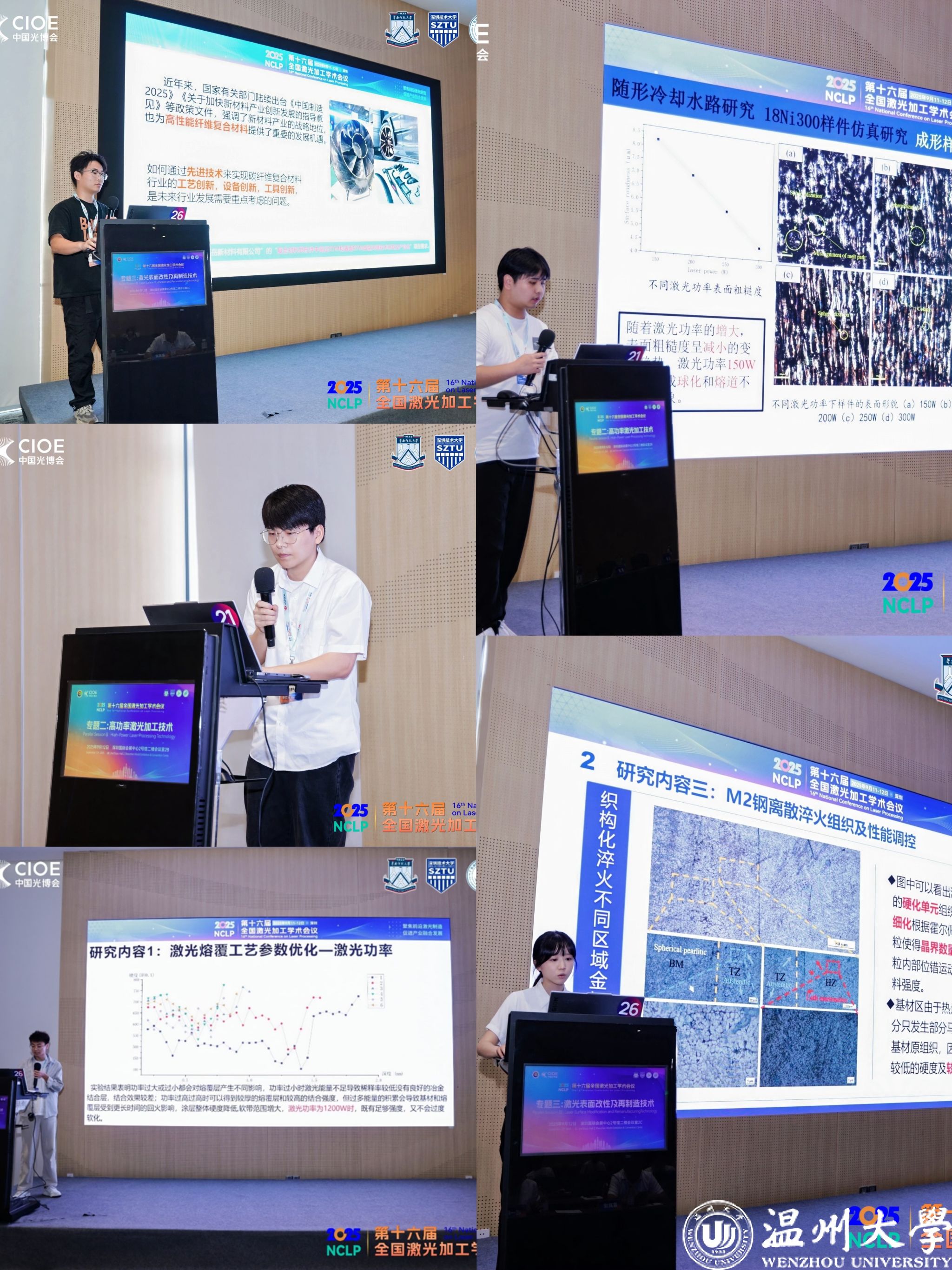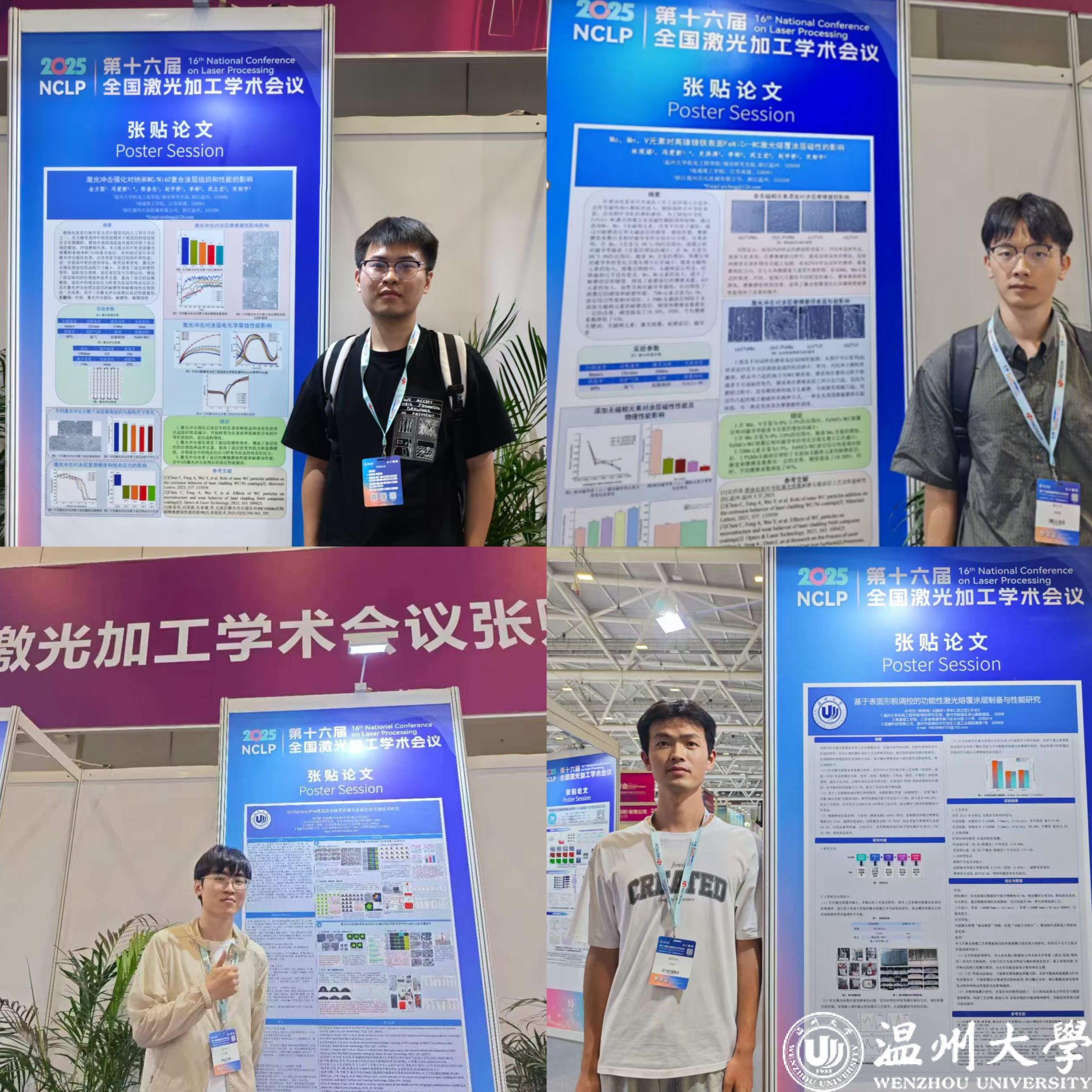 会上,盛会汇聚全国逾千名激光领域专家学者。双赢彩票 学子表现亮眼:金欢欢等 11 名研究生分赴“激光表面改性技术”“高功率激光加工技术” 等分会场,围绕模具钢修复、复合涂层制备、微织构热连接等主题作口头报告;团队还以学术墙报形式展示成果,吸引众多学者驻足交流,尽显良好学术素养。