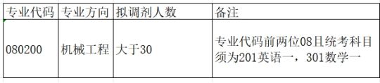 (2)调剂考生第一志愿专业与调入专业相同相近,应在同一学科门类范围内。080200机械工程统考科目须为:101思想政治理论,201英语一,301数学一;