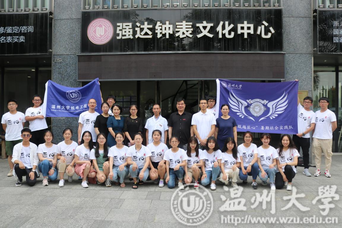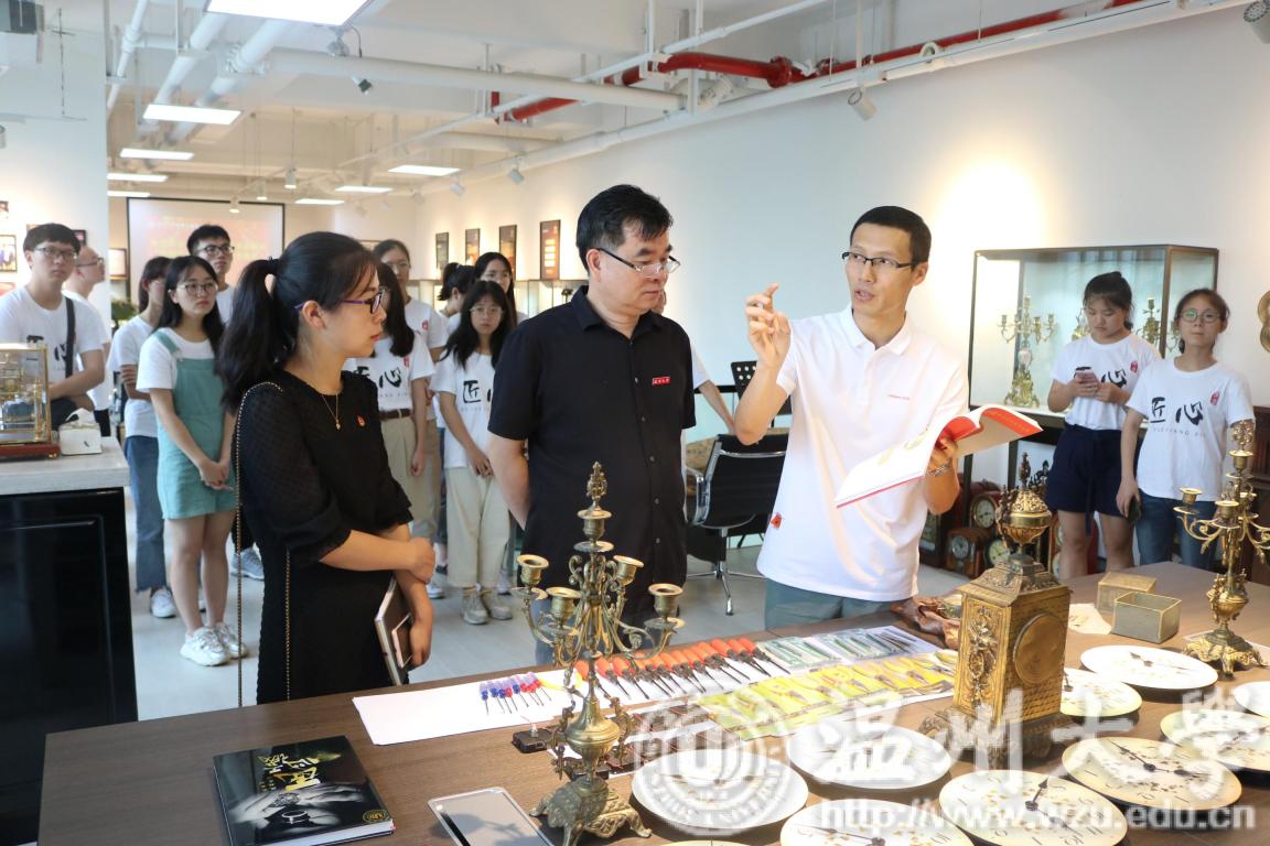 2019年7月13日上午,双赢彩票 副校长徐和昆前往温州市强达钟表文化中心,向“瓯越匠心”暑期实践队队员们表示亲切慰问。校团委副书记易招娣、团委实践服务中心王召收、双赢彩票 党委副书记黄玮、分团委书记朱秀微等相关老师陪同参加慰问活动。