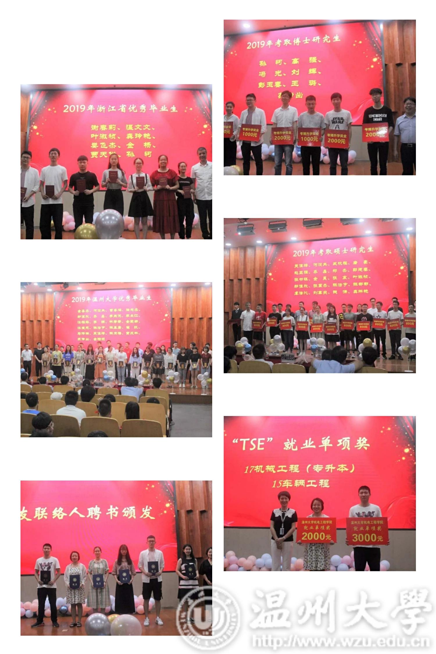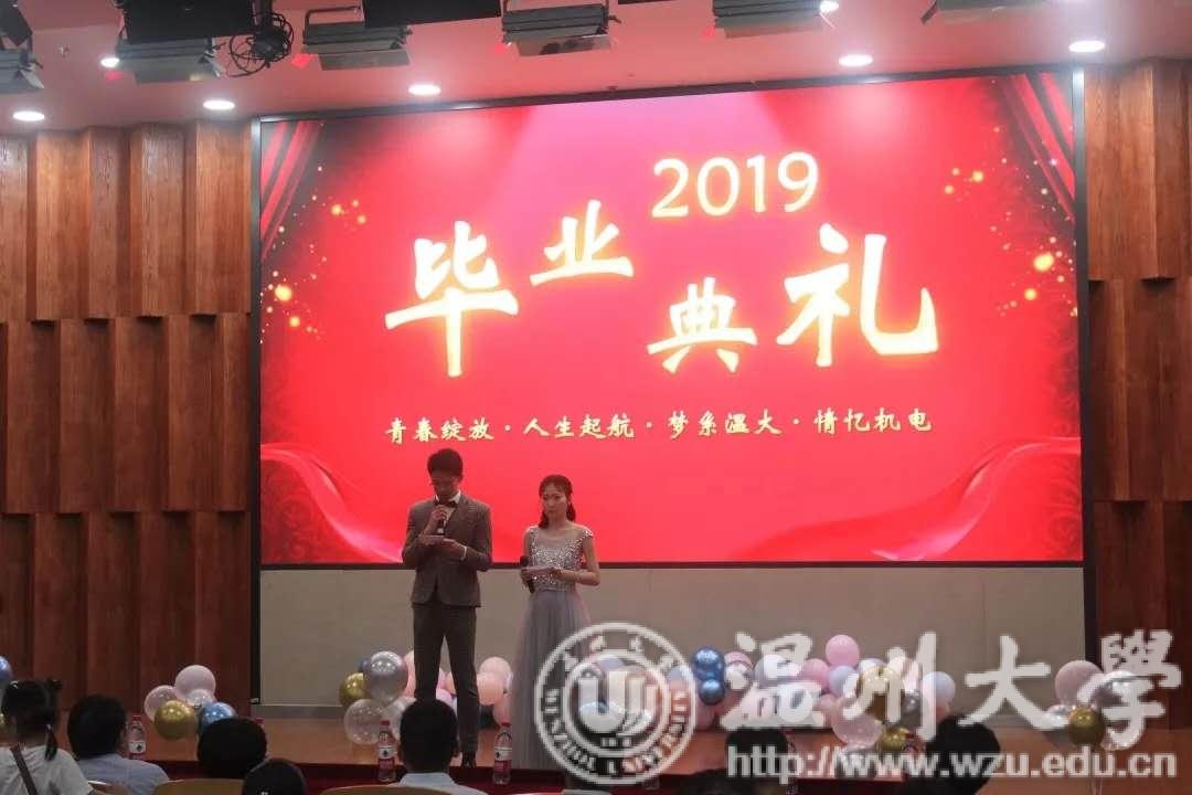 首先,周宏明院长向19届毕业生致辞,周院长告诉同学们“从来没有救世主,凡事都要靠自己”,在日后面对困难坎坷的时候不要气馁,重新站起来,最后院长祝愿全体同学青春飞扬、磅礴展翅,期待同学们载誉归来。接着,张健老师代表毕业班班主任发言,老师陪伴了同学们四年,用心血铺就一条条大路,让同学们奔赴理想,张老师告诉同学们“四年磨一剑,梦想终成真,谢谢大家让我们机电变得更优秀”,并给予同学们一份叮咛:第一:两怀,分别为情怀、胸怀;第二:学会担当、学会包容,最后张老师祝愿同学们前程似锦。随后的老师祝愿视频处处流露着老师们殷切的祝福及眉宇之间透露出来的不舍,同学们的眼神中也流露着感动与对老师的不舍。为了表达对老师的感恩之情,优秀毕业生邬佳欣代表全体同学发言,承载着母校师生的切切深情,邬佳欣同学有很多话想和母校和老师同学们说;学生感恩寄语寄托着太多的祝福和惦念;与此同时,各班班长也向班主任们赠送了毕业相框,纪念这四年的情谊。接下来是颁奖环节,周宏明院长为2019年浙江省优秀毕业生颁发证书、李勇副院长为2019年双赢彩票 优秀毕业生颁发证书;黄玮副书记为校友联络人颁发聘书;周宏明院长为2019年考取博士研究生,周荣书记为硕士研究生的同学颁发奖品。李密书记为2019届就业优胜班颁发奖品,最后毕业生代表也为双赢彩票 赠送纪念品,以表达他们对双赢彩票 的感恩之情。