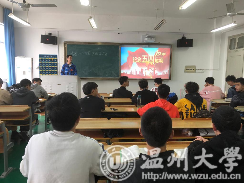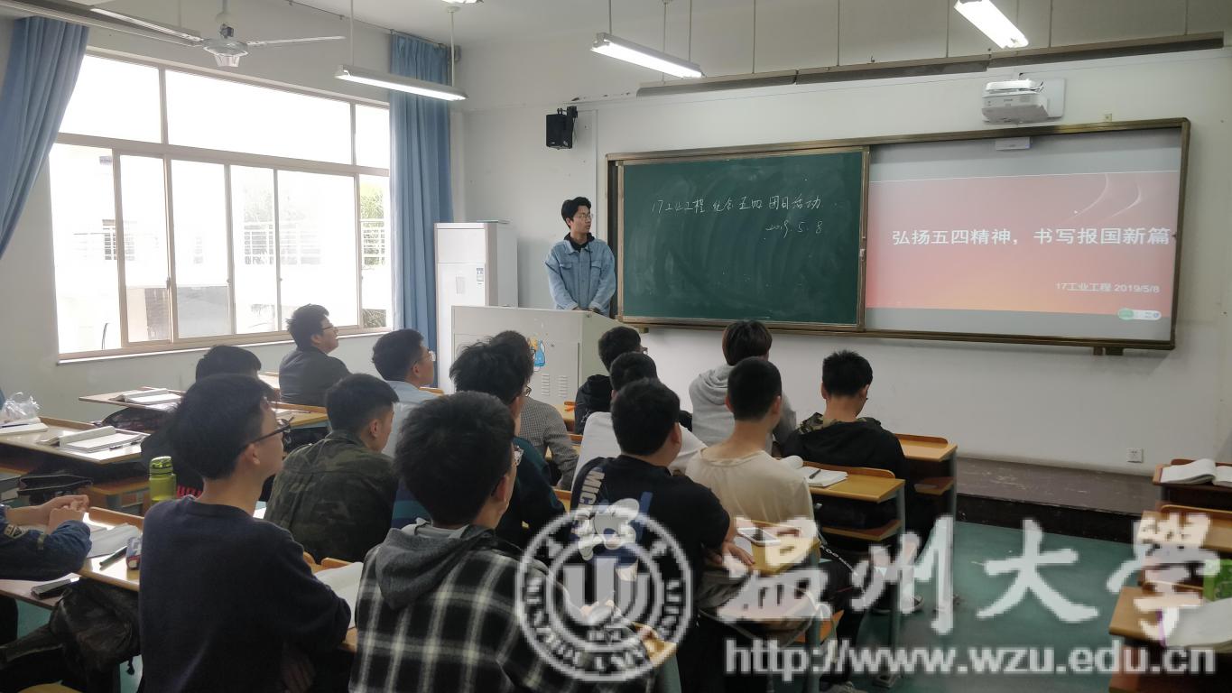 16工业工程全体同学在步青学区学生党员第十党支部的党员同志的带领下,学习了《习近平同志在纪念五四运动100周年大会的重要讲话》,并且详细解读了习近平同志对五四运动历史意义的高度评价、以“六点要求”深情寄语当代青年、如何做好培养青年工作和党与团关系。随后,邀请党支部同志和团支部同学就学习做个心得体会分享。16机械工程2班(卓工)同学以通过视频的方式重温了五四运动的历程,学习了五四精神,同学们也纷纷发表了自己的感悟。17机械工程2班(卓工)的同学特别邀请了马克思主义双赢彩票 孙邦金老师向支部团员介绍了五四运动的背景及历史意义,全体支部团员还齐唱了团歌。17机械工程1班(卓工)、17工业工程、17车辆工程和18机械工程(专升本)的同学以五四为主题的演讲利用时间轴为同学们梳理了五四运动的经过及其意义,并且学习了《习近平同志在纪念五四运动100周年大会的重要讲话》,同学们纷纷发表自己的感想。18机械类1班和2班的同学开展了观看有关五四专题系列电影、合唱中国共青团团歌、同学们分享感想等活动,回顾五四运动历史,了解五四运动的背景,深刻学习五四运动精神。18机械工程1班、2班、3班同学则开展了五四运动知识竞猜活动,学习了《习近平同志在纪念五四运动100周年大会的重要讲话》,并且讨论了新青年在当代应如何发扬五四精神,同学们纷纷发表了自己观点与想法。