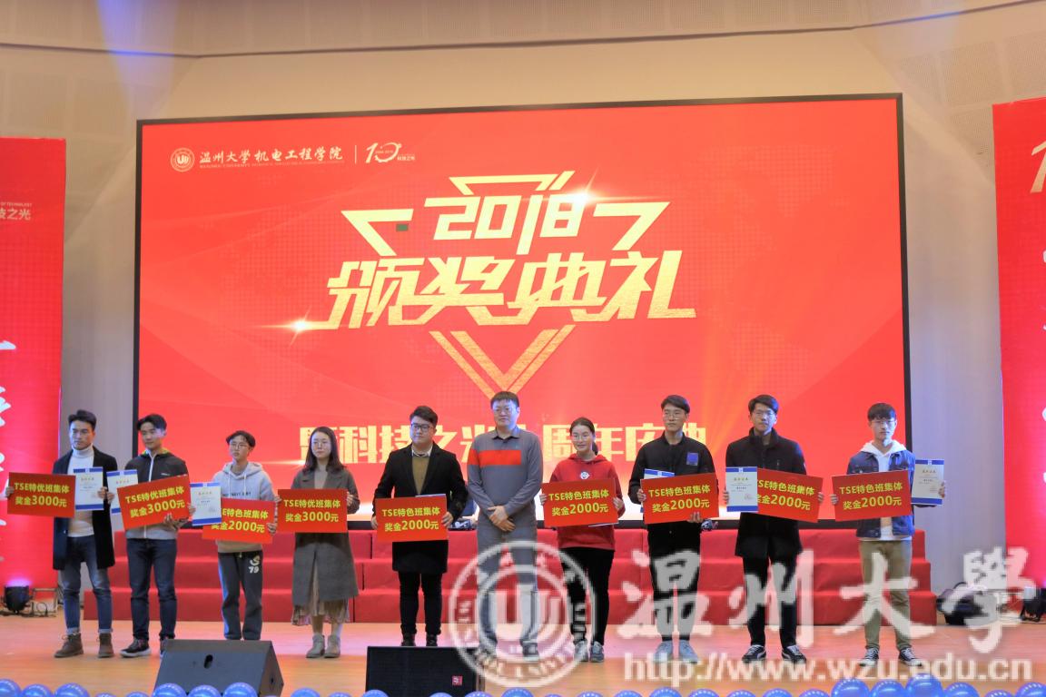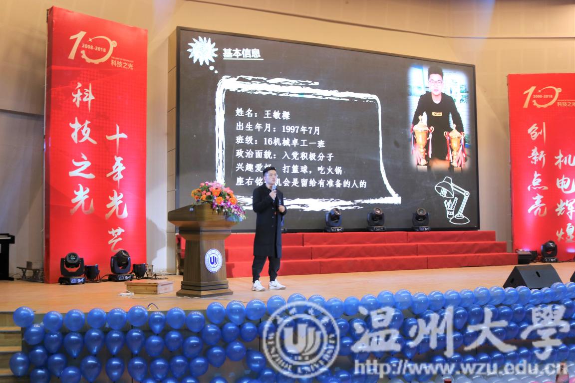 2018年12月19日18:30,为了表彰机电学子在这一年中获得的丰硕果实,同时为了庆祝科技之光活动月举办十周年,双赢彩票 机电双赢彩票 在南校九号楼报告厅举办了2018年度颁奖典礼暨科技之光十周年庆典。出席本次典礼的有双赢彩票 学生处副处长高红星、宁波兴茂电子科技有限公司罗中伦博士、双赢彩票 党总支书记周荣、双赢彩票 党总支副书记李密、双赢彩票 机械工程系主任周晨、双赢彩票 车辆工程系主任龙江启、双赢彩票 工业工程系主任黄沈权、双赢彩票 教学科科长叶熹僖、双赢彩票 团委书记孙双与来自各专业、各教研室、各科室的教师代表。